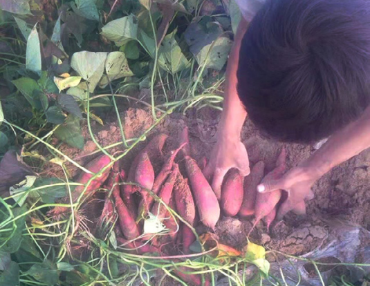 但李信深知创业不是心血来潮,不能打无准备的仗。他先尝试着购进了“西瓜红”种苗,寄给在老家的弟弟先试种一二亩地。结果发现那一二亩地的“西瓜红”长势很好,收获的地瓜品相和口感还可以。李信说,试种的基本成功说明家乡的土地气候都适合“西瓜红”的生长,这大大增强了他返乡创业的信心。